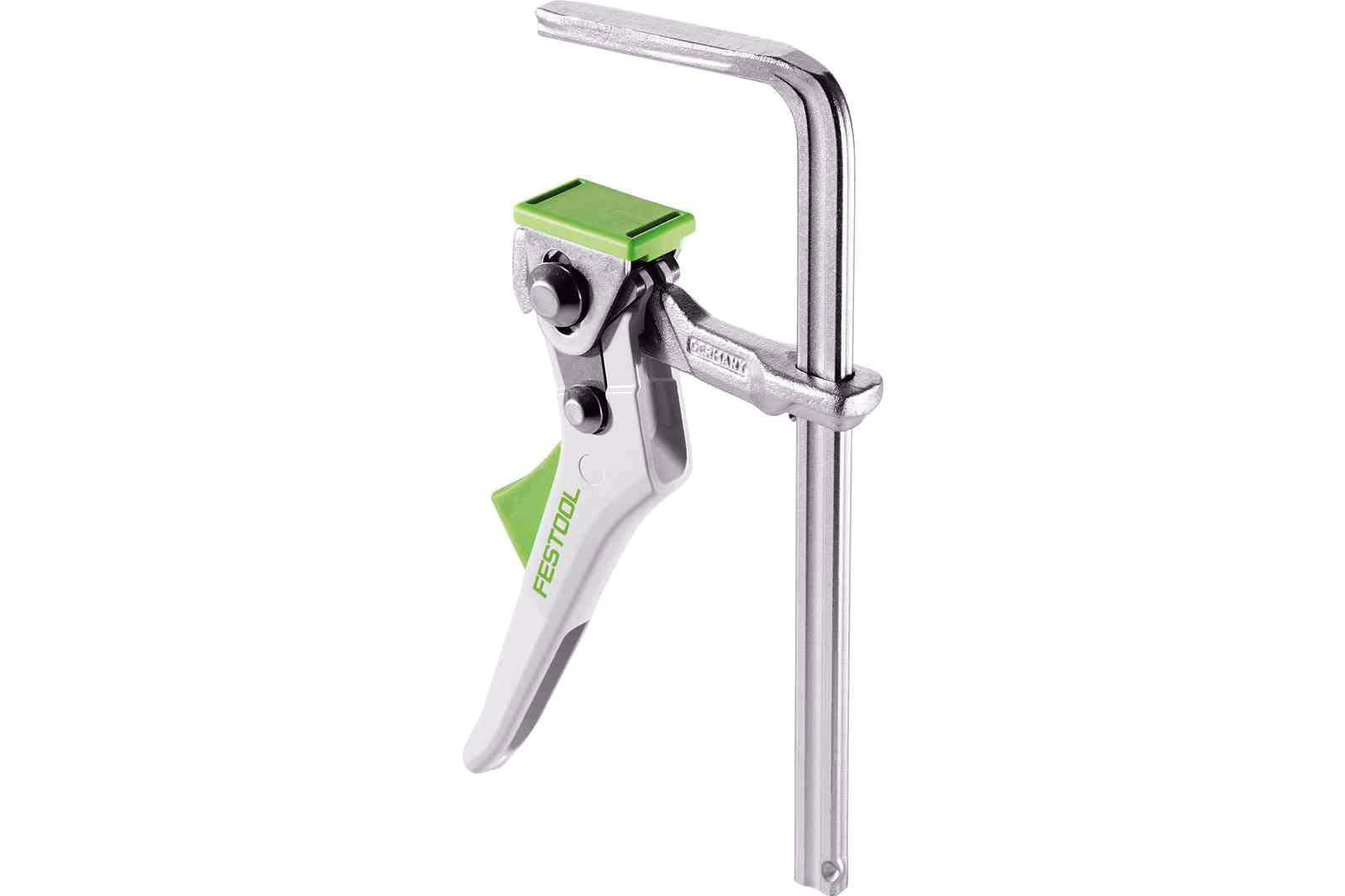 Ścisk dźwigniowy Festool z bezpiecznym mocowaniem za pomocą MFT 3, wykonany w całości ze stali. Specjalny zatrzask gwarantuje, że ścisk nie odkręca się nawet przy lekkich wibracjach. Kształt pałąka mocującego pozwala na dopasowanie do szyn prowadzących, wpustu i profili urządzenia MFT oraz Precisio. Dla bezpiecznego mocowania szyny prowadzącej wkładany jest do dolnego wpustu. Umożliwia zakres mocowania 160mm i sprawdzi się z urządzeniami typu FS/2, MFT.