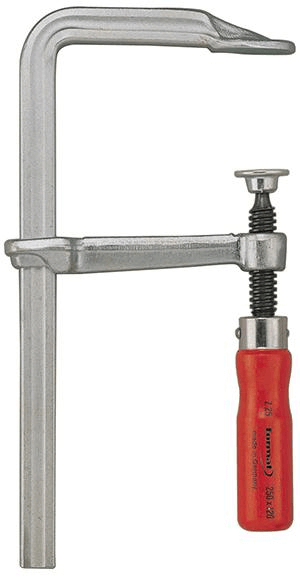 Prowadnica, ramię stałe i płytka dociskowa wykonane w całości ze statycznie zoptymalizowanego, ciągnionego na zimno profilu stalowego. Ramię ruchome ze stali ulepszonej cieplnie, odkuwane i galwanicznie ocynkowane, lekkobieżna śruba dociskowa z walcowanym, umacnianym przez zgniot i oksydowanym gwintem trapezowym, z drewnianą rękojścią i ruchomą płytką dociskową.