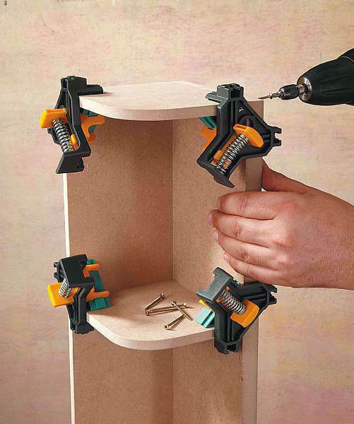 Ściski kątowe sprężynowe przeznaczone są do połączeń typu "T" oraz połączeń kątowych desek o różnej grubości od 10 do 22mm. Wyjątkowo praktyczne ściski pozwalają na wygodną pracę tylko jedną ręką i sprawdzą się przy skręcaniu oraz sklejaniu desek i ram. Ściski Wolfcraft znacznie usprawnią montaż szafek czy półek, zapewniając precyzyjne efekty.