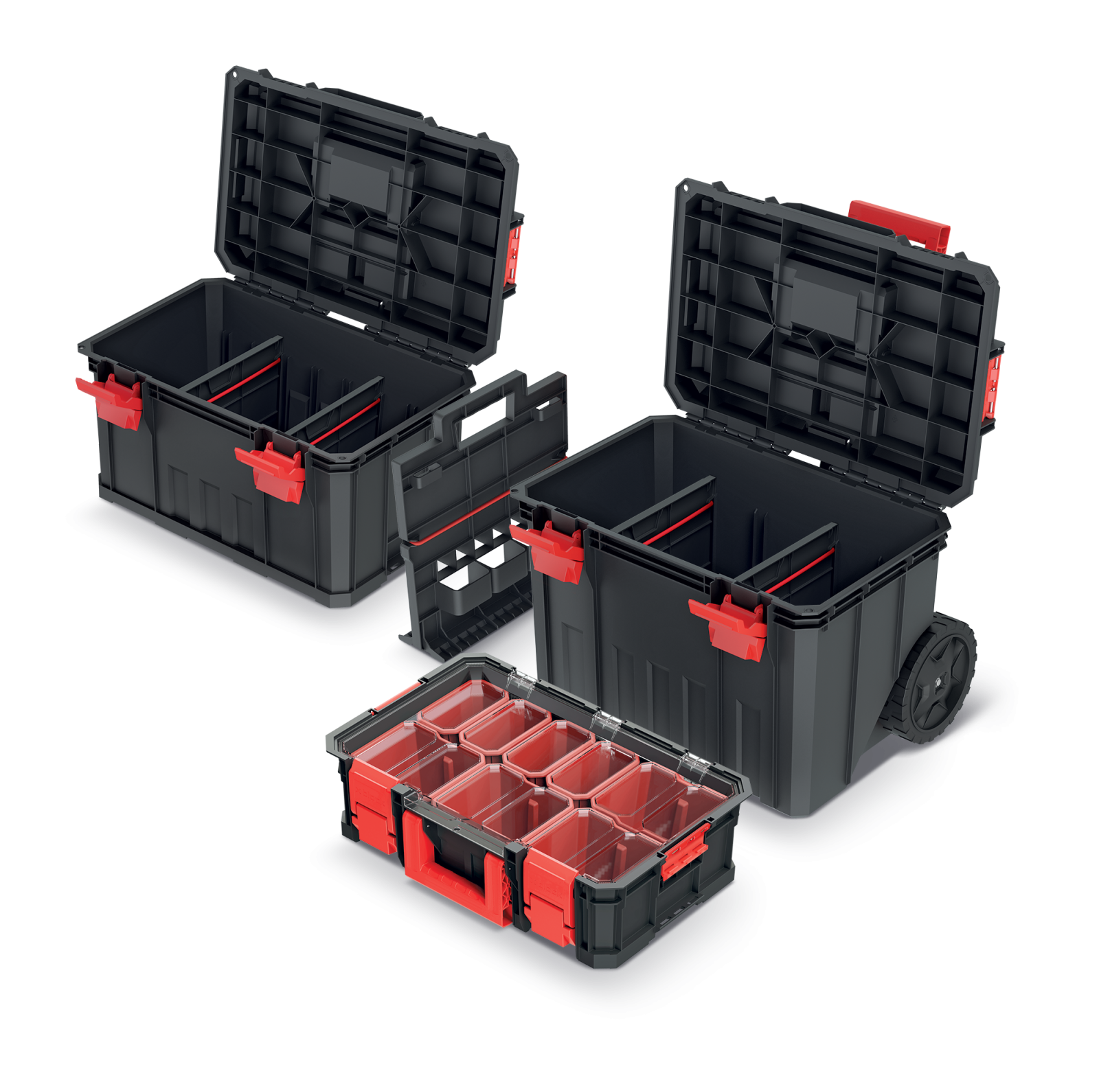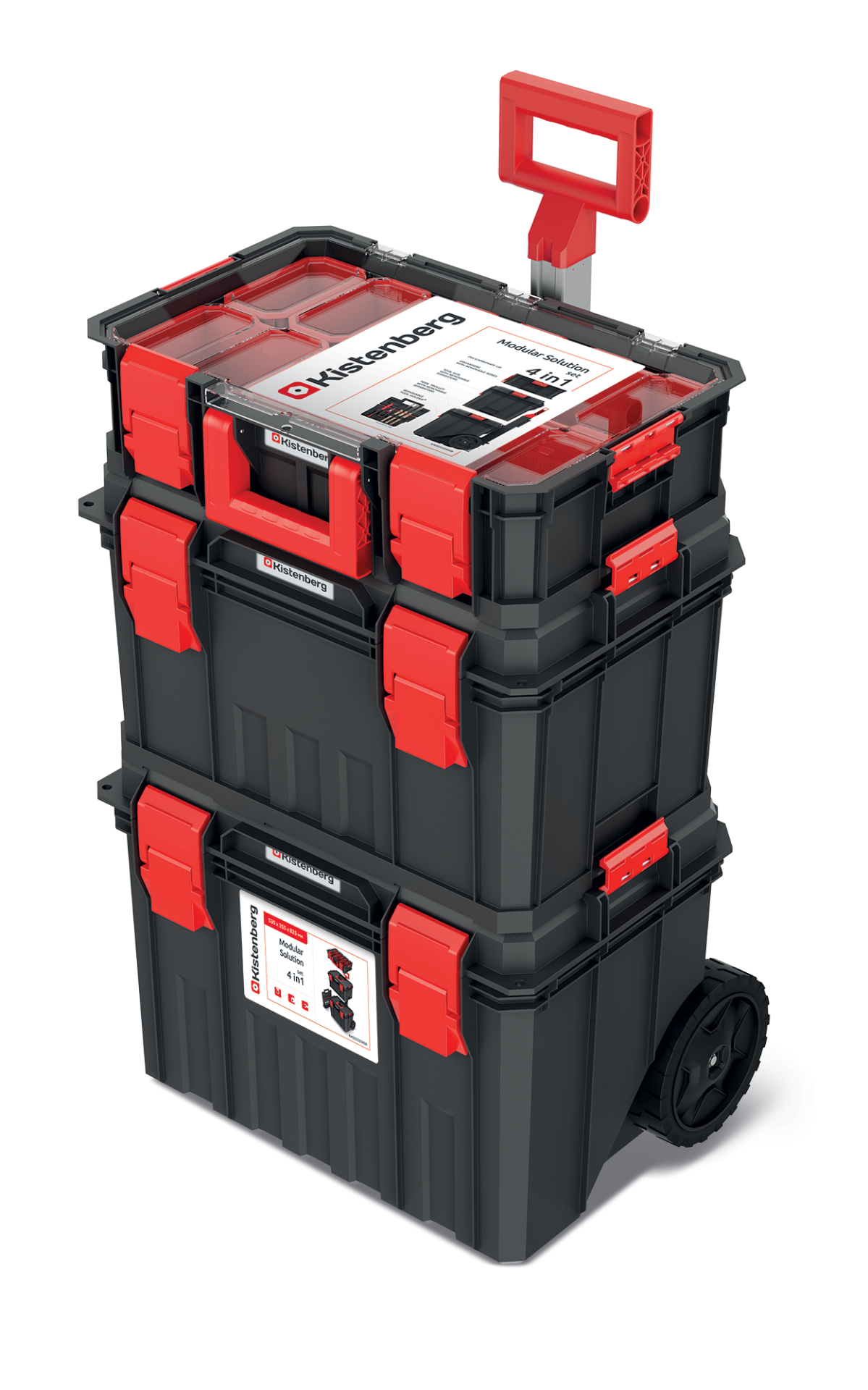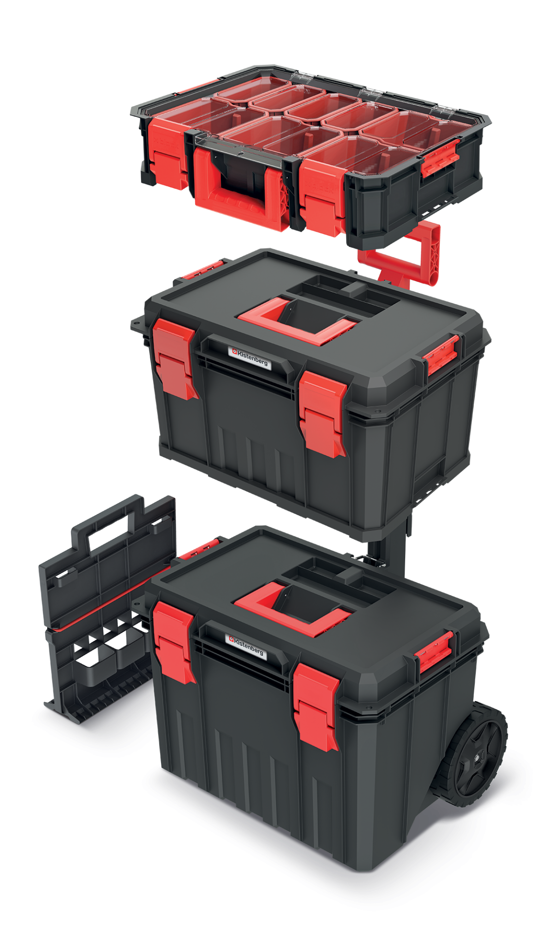 Skrzynia modułowa MODULAR SOLUTION Kistenberg to zestaw modułowy jezdny złożony z dwóch skrzyni i organizera. W skład zestawu wchodzi: