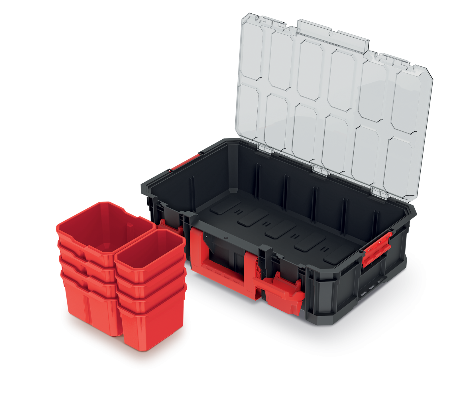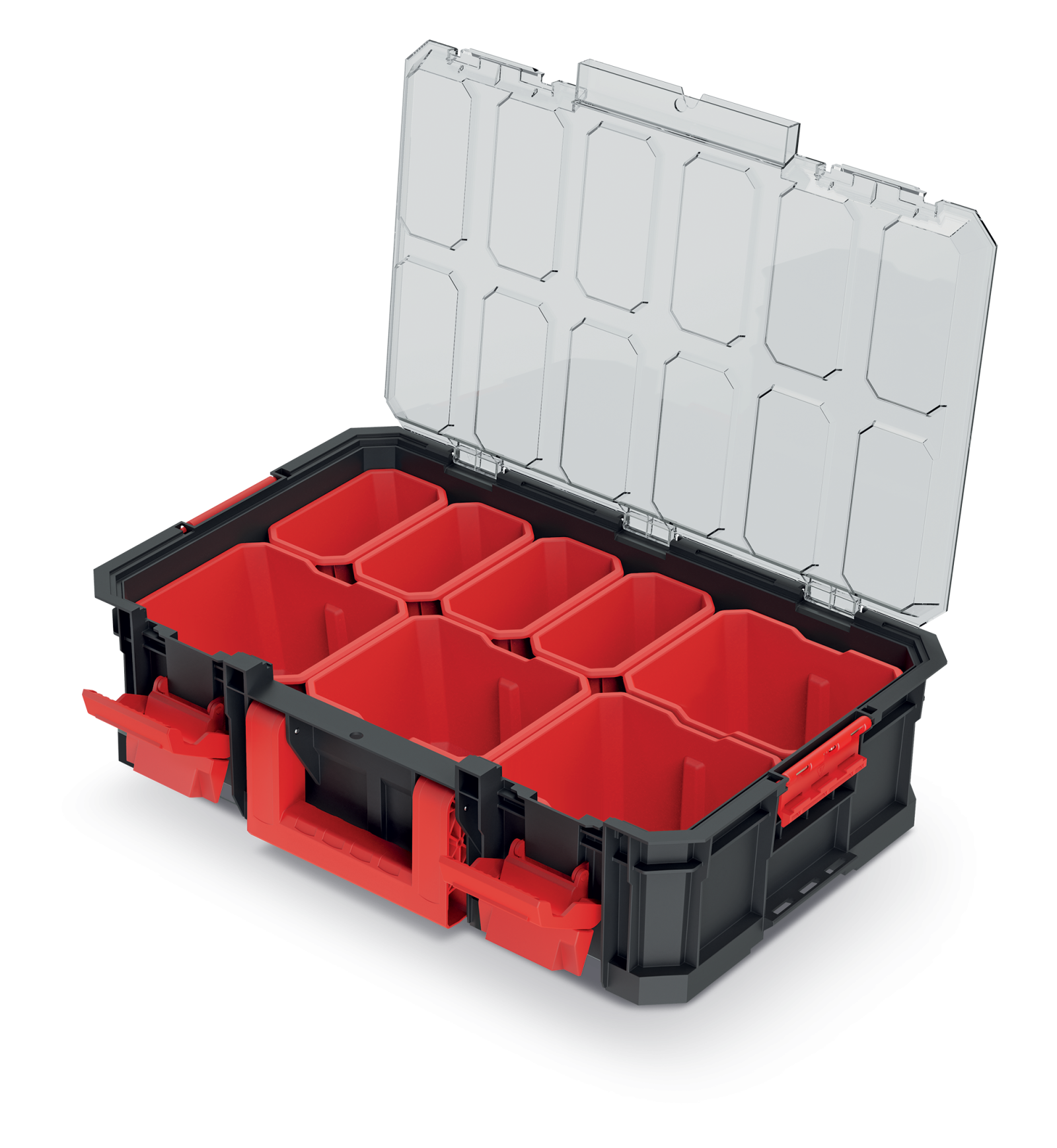 Organizer MODULAR SOLUTION 15 o wysokości 134 mm wyposażony w 8 wyjmowanych kubeczków do aranżancji przestrzeni wewnętrznej. Zapięcia organizera wykonane zostały z ABS, a zawiasy z metalu dla maksymalnej wytrzymałości. Organizer pozwala na ładowność do 20 kg i jest kompatybilny z MODULAR SOLUTION, MSX oraz platformą KXBP6045.
