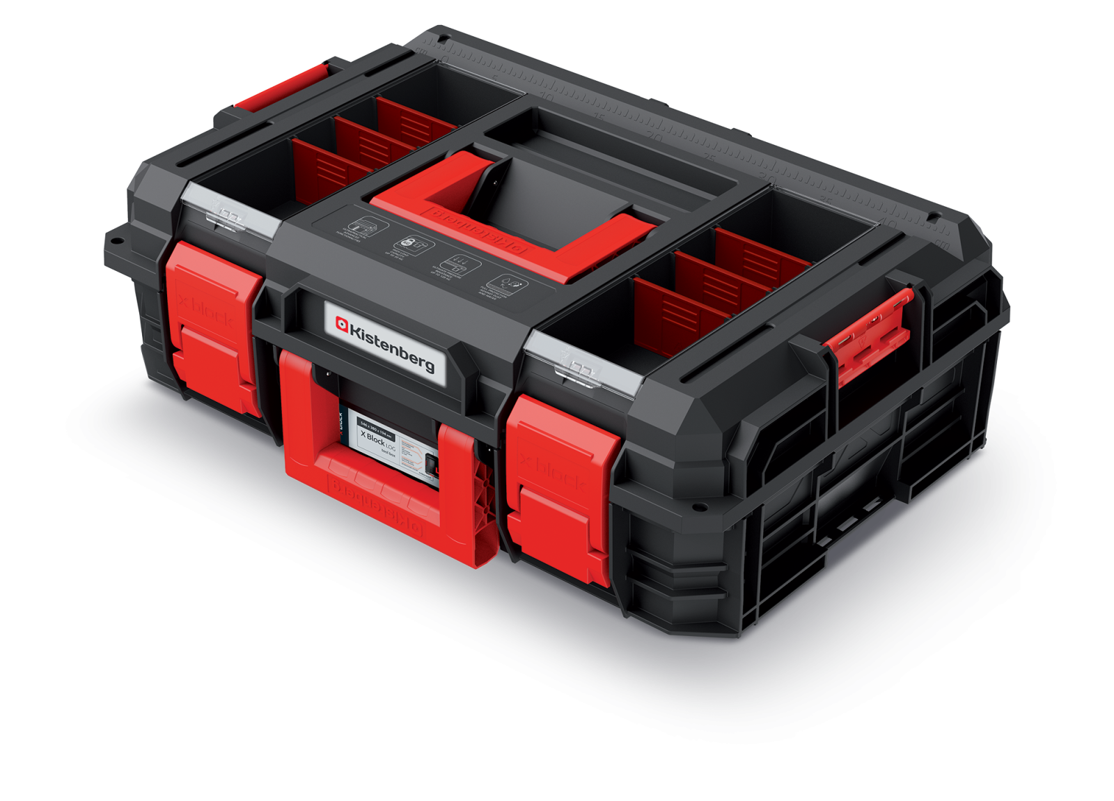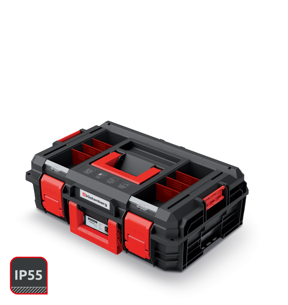 Walizka narzędziowa X BLOCK LOG 20 Kistenberg o wysokości 194 mm wyposażona została w dwa uchwyty ułatwiające przenoszenie. Korpus walizki wykonany został z mieszanki polimerów o podwyższonej wytrzymałości. Walizka posiada 2 organizery w pokrywie, a w każdym z nich 3 wyjmowane przegrody oraz dwie wyjmowane przegrody i 6 kubeczków do organizacji przestrzeni wewnątrz. Dodatkową zaletą skrzyni jest miara w centymetrach i calach wbudowana w pokrywę oraz możliwość wykorzystania skrzyni jako podestu roboczego - z wytrzymałością na obciążenie do 120 kg. Walizka posiada także litą uszczelką, która zapewnia odporność na pył i zalanie. Skrzynia narzędziowa jest kompatybilna z X BLOCK, X BLOCK BRIDGE, S BLOCK PRO 55, S BLOCK ALU LOG 55.