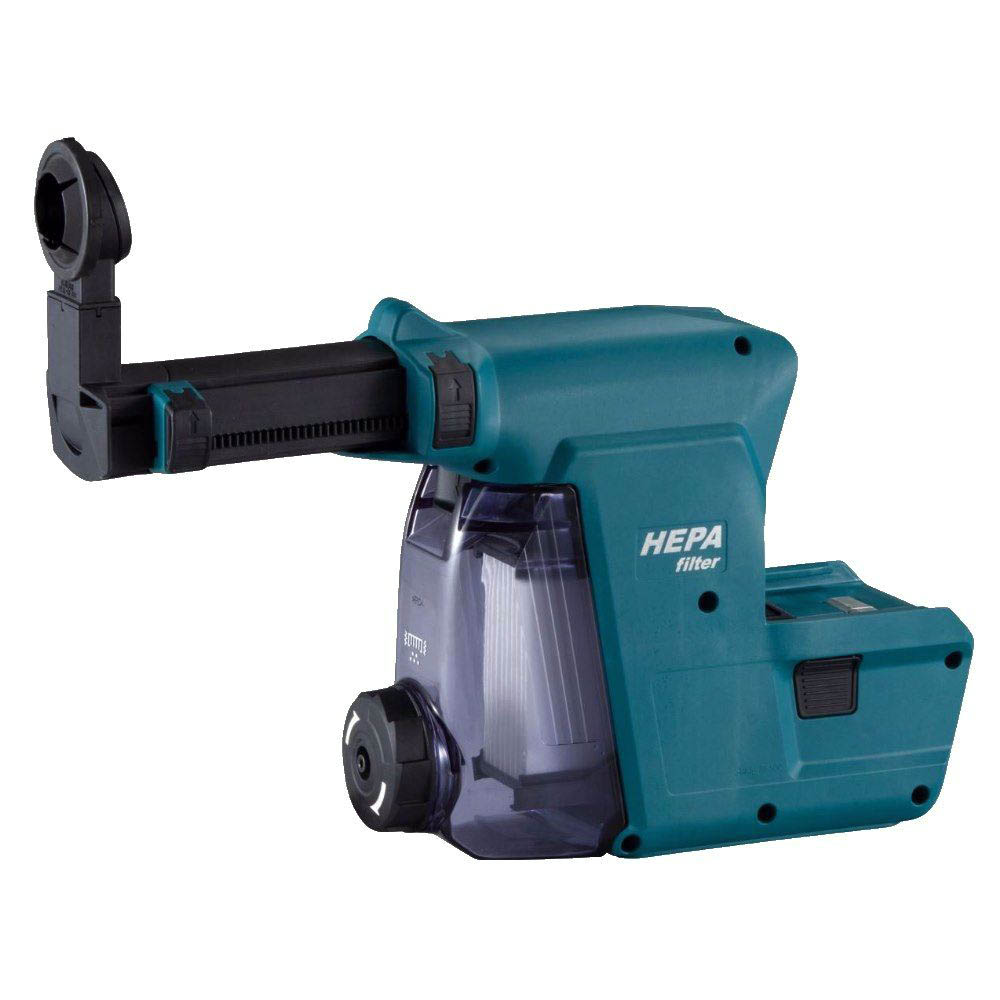 Pochłaniacz pyłu Makita DX07 przeznaczony do narzędzi DHR242 i DHR 243. Pochłaniacz wyposażony został w filtr HEPA, który skutecznie wyłapuje wszystkie rozmiary pyłu. Duża pokrywa skrzynki na pył otwierana jest poprzez naciśnięcie jednego przycisku. Pochłaniacz pyłu Makita posiada wskaźnik głębokości oraz jest łatwy w mocowaniu i usuwaniu.