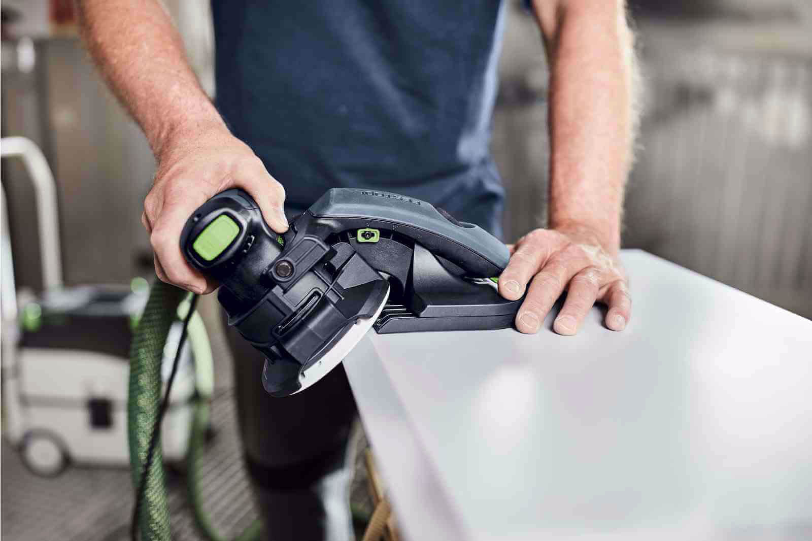 Dzięki idealnemu przyleganiu do powierzchni urządzenie eliminuje przechylanie się i przeszlifowanie. ES-ETS 125 sprawdzi się niezależnie od rozmiaru obrabianych materiałów. Sprawdzona przy małych i dużych elementach, wąskich i szerokich krawędziach od 5 - 60mm , powierzchniach nachylonych pod kątem od 43 - 92° oraz przy zewnętrznych łukach. Wyposażona w samoczynne zasysanie i kompatybilna z odkurzaczem zapewnia bezpyłowe szlifowanie.