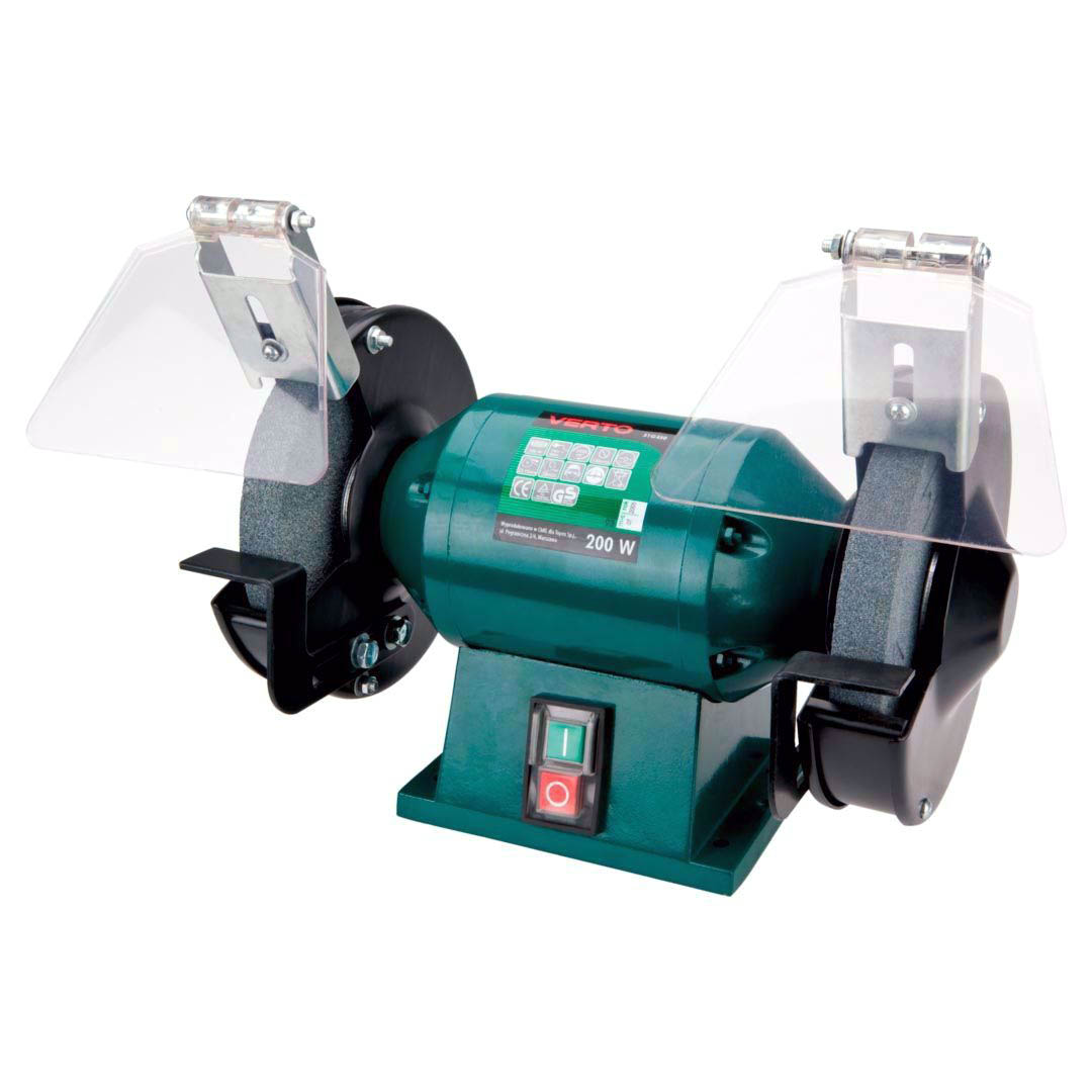 Przeznaczona do lekkich prac w małych warsztatach oraz samodzielnej działalności amatorskiej. Doskonale nadaje się do ostrzenia narzędzi takich jak wiertła i dłuta, istnieje możliwość zamontowania drucianych szczotek tarczowych. Posiada solidną obudowę z osłonami przeciwodpryskowymi. Maksymalna prędkość obrotowa tarczy bez obciążenia wynosi 2950 obr./min. Szlifierka dostarczana jest w zestawie z 2 tarczami szlifierskimi A36 i A60. Zgodność z europejskimi standardami bezpieczeństwa zapewnia certyfikat CE. Marka VERTO oferuje asortyment elektronarzędzi i akcesoriów dla każdego majsterkowicza.