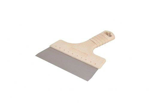 Szpachla Kubala o wymiarach 200 x 47 mm wykonana została ze stali nierdzewnej, kwasoodpornej o grubości 0,45 mm. Posiada ergonomiczny uchwyt z kompozytu drewna. Szpachla Kubala przeznaczona jest do gładzi gipsowych.