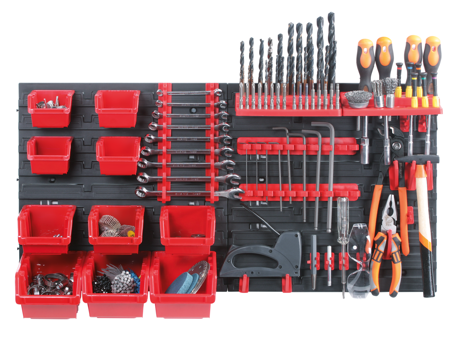 - tablica - 2 części- 4 kuwety KTR12- 3 kuwety KTR16- 3 kuwety KTR20- 20 wieszaków narzędziowych KBH20- 2 półki narzędziowe KBS20
