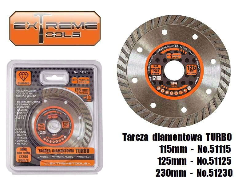 Tarcza diamentowa TURBO SLIM 115x22,2 mm beton zbrojony ceramika gres ExtremeTools 56115