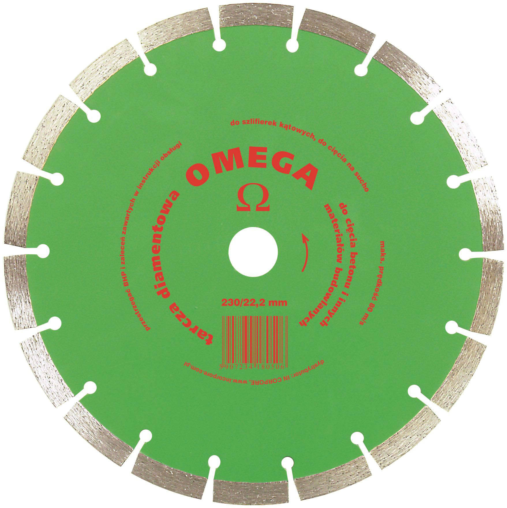 Segmentowa tarcza OMEGA o średnicy 350mm umożliwia cięcie betonu i materiałów budowlanych na sucho i na mokro, za pomocą maszyn ręcznych stołowych oraz jezdnych. Wyjątkowo wytrzymała przy wysokich temperaturach skrawania, dzięki mocowaniu segmentów na zasadzie spawu laserowego.