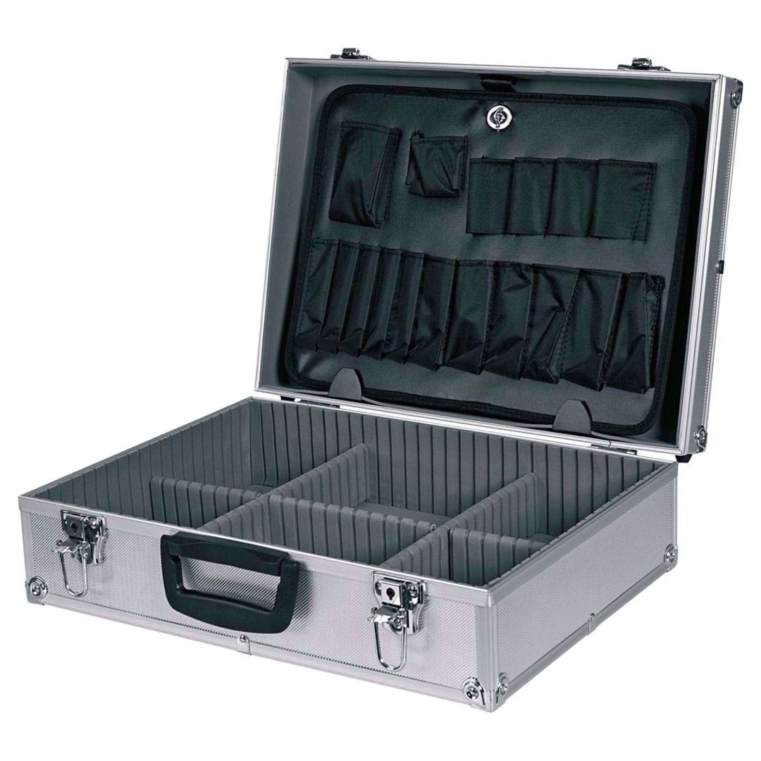 Walizka aluminiowa Topex o wymiarach 45 x 15 x 32 cm i wadze 2.4 kg. Walizka umożliwia wszechstronność zastosowań, dzięki lekkiej konstrukcji oraz systemowi przegród i kieszeni. Wnętrze walizki zostało wyścielone miękkim materiałem dla ochrony przenoszonych przedmiotów. Walizka Topex z wzmocnionymi krawędziami jest bardziej odporna na uszkodzenia. Posiada dwa zamki na kluczyk.