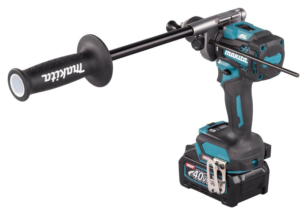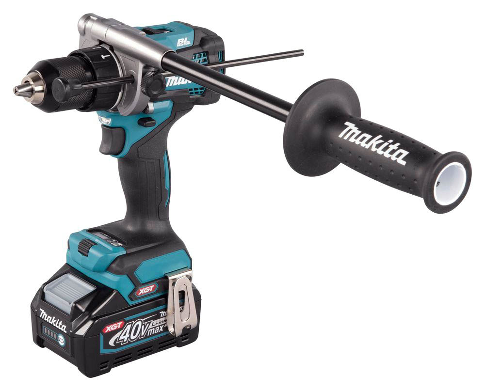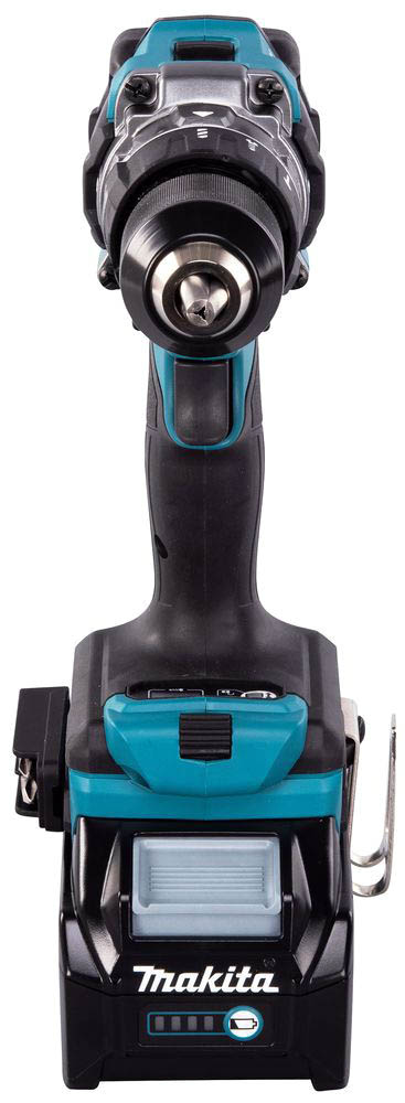 Wiertarko-wkrętarka Makita udoskonalona została systemem ochrony akumulatora, który automatycznie wyłącza zasilanie w przypadku bardzo niskiego poziomu naładowania. Zaletą HP001GM201 jest także technologia AFT, która automatycznie wyłącza narzędzie w przypadku nagłego spowolnienia lub zatrzymania. Narzędzie dostarczane jest w zestawie z dwoma akumulatorami BL4040 (40Vmax / 4,0 Ah) oraz ładowarką DC40RA.