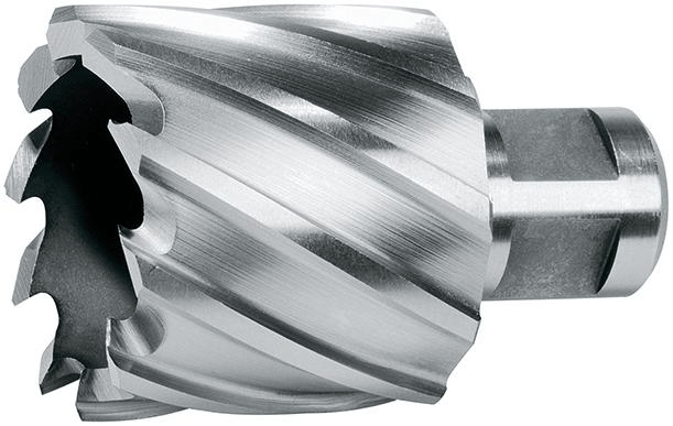 Do zastosowania na wiertarkach na stojakach magnetycznych i na wiertarkach i słupowych z gniazdem ze stożkiem Morse'a. Wiertła rdzeniowe skrawają tylko wąskim pierścieniem. Pozostający rdzeń jest wypychany dzięki sprężynie działającej na trzpień prowadząco-wypychający. Wióry są odprowadzane szybko na zewnątrz, co minimalizuje niebezpieczeństwo złamania narzędzia. Nawet duże średnice wierconych otworów wymagają stosunkowo niewiele energii. Wiertła rdzeniowe skrawają w porównaniu z wiertłami spiralnymi tylko niewielką część całej powierzchni. Z tego wynika bardzo duża oszczędność siły i czasu.