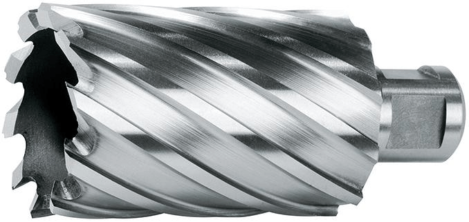 Do zastosowania na wiertarkach na stojakach magnetycznych i na wiertarkach i słupowych z gniazdem ze stożkiem Morse'a. Wiertła rdzeniowe skrawają tylko wąskim pierścieniem. Pozostający rdzeń jest wypychany dzięki sprężynie działającej na trzpień prowadząco-wypychający. Wióry są odprowadzane szybko na zewnątrz, co minimalizuje niebezpieczeństwo złamania narzędzia. Nawet duże średnice wierconych otworów wymagają stosunkowo niewiele energii. Wiertła rdzeniowe skrawają w porównaniu z wiertłami spiralnymi tylko niewielką część całej powierzchni. Z tego wynika bardzo duża oszczędność siły i czasu.