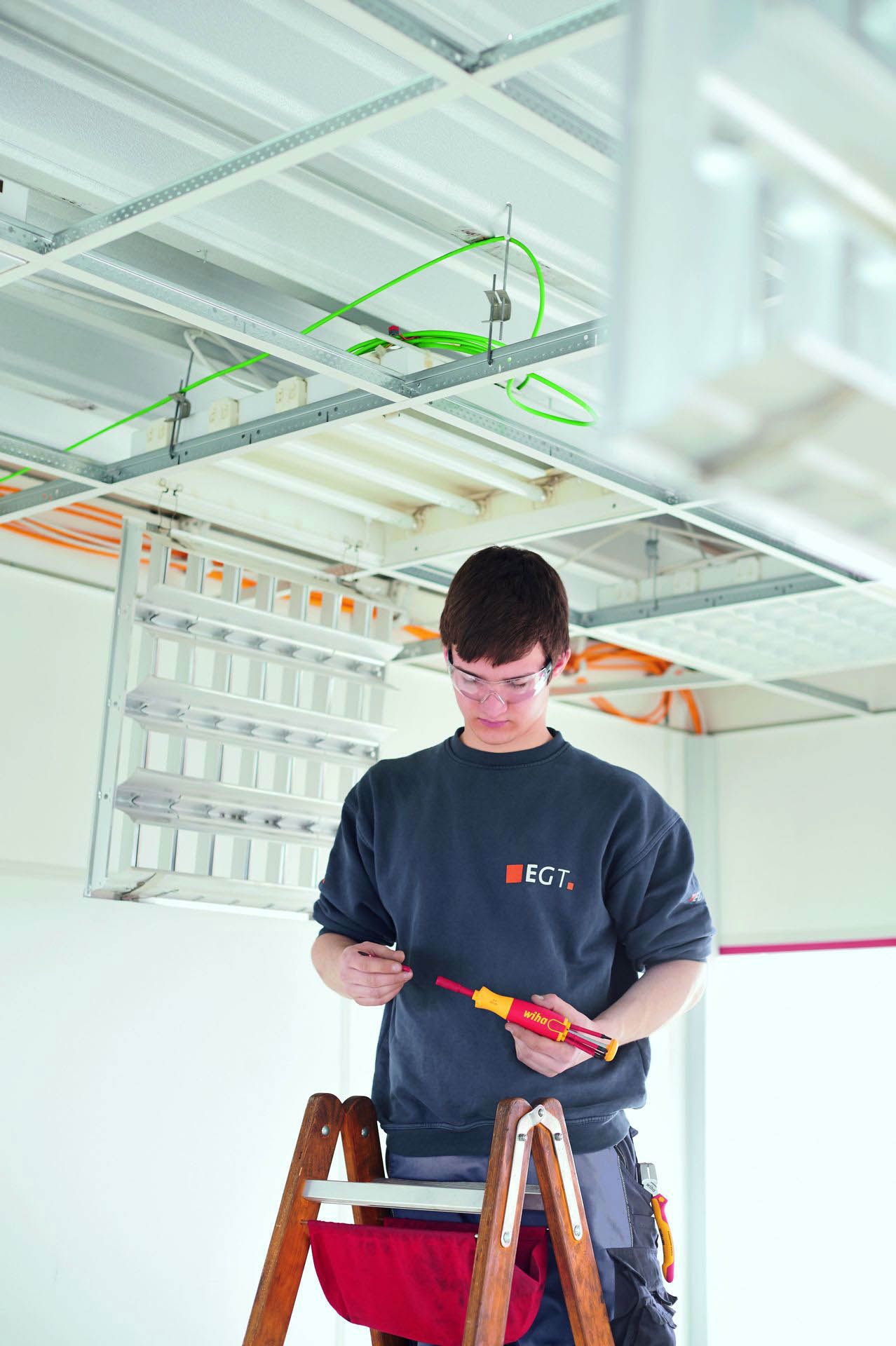 Wkrętak z magazynkiem bitów LiftUp electric marki Wiha to niezbędnik każdego elektryka. Narzędzie zostało wyposażone w schowek ukryty w rękojeści, który zawiera 6 bitów typu slimBit. Schowek z uchytem ClicFix mieści wszystkie bity i skutecznie je blokuje. Takie rozwiązanie czyni z wkrętaka Wiha maksymalnie uniwersalne narzędzie. Bity slimBit o długości 75 mm są całkowicie zintegrowane z przednią częścią izolacji ochronnej i umożliwiają wygodny dostęp do głęboko osadzonych zacisków śrubowych i sprężynowych. Ponadto wkrętak posiada obrotowy kapturek zwiększający komfort użytkowania. Zarówno wkrętak jak i bity posiadają certyfikat zgodności z normą międzynarodową IEC 60900. Narzędzie testowane pod napięciem 10 000 V AC pozwala na pracę pod napięciem do 1000 V AC.