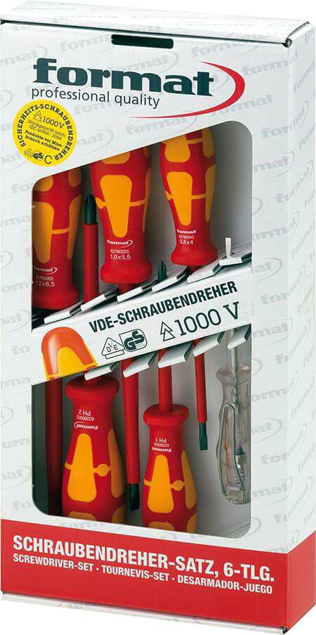 Z wysokostopowej stali specjalnej. Okrągły, trzpień izolowany z powłoką specjalną dla zwiększenia siły i dokładności pasowania. Z ergonomicznie ukształtowaną rękojeścią Kraftkant, z miękkimi wkładkami i zabezpieczeniem przed staczaniem narzędzia z miejsca pracy. Rękojeść i trzpień izolowane do 1000 V zgodnie z IEC 60900, DIN EN.
