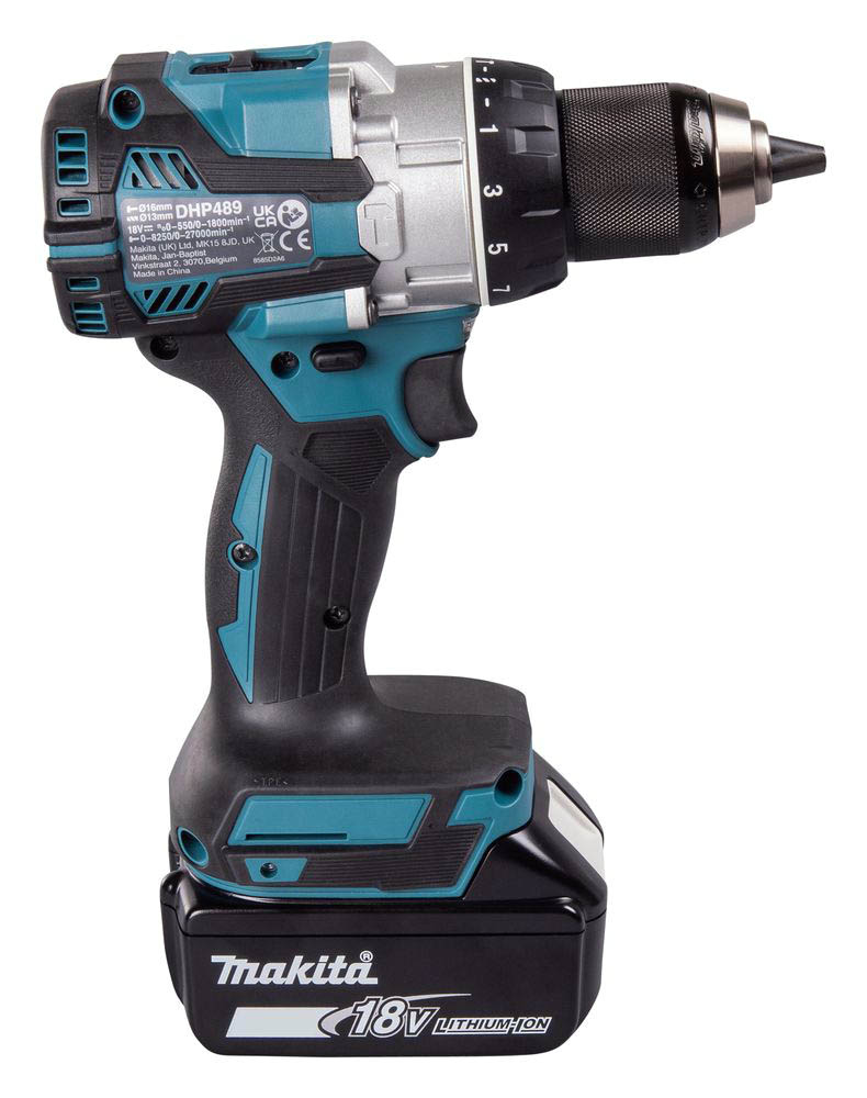 Wiertarko-wkrętarka udarowa Makita to akumulatorowe narzędzie o kompaktowej budowie. Posiada rękojeść pokrytą elastomerem, dzięki czemu umożliwia pewny chwyt. Wyposażona została w bezszczotkowy silnik oraz wytrzymałą obudowę przekładni wykonaną z aluminium. Wiertarko-wkrętarka Makita pozwala na wiercenie i wiercenie z udarem z 21-stopniową regulacją momentu obrotowego. Umożliwia regulację prędkości obrotowej spustem włącznika - na 1 biegu 0-550 obr./min, a na 2 biegu - do 1800 obr./min. Częstotliwość udarów wynosi 0 - 8250 / 27 000 /min. Ponadto podczas pracy z DHP489 akumulator jest chroniony specjalnym systemem, który wyłącza zasilanie, gdy poziom naładowania jest niski. Komfort pracy z wkrętarką poprawia podwójna dioda LED skutecznie oświetlająca obszar roboczy.