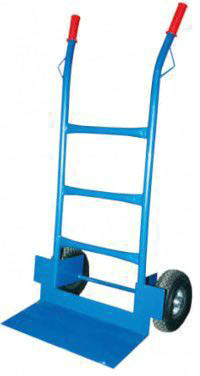Wózek dwukołowy "Młynarka". Wózek jest stabilny w prowadzeniu oraz idealny do przewożenia dużych ładunków. Rura Młynarki wykonana jest z blachy o grubości 4mm. Koło łożyskowane, pneumatyczne. Maksymalne obciążenie wózka: 200 kg. Wygodne rączki z tworzywa, posiadające osłonę rąk. Solidna, stalowa rama wózka.