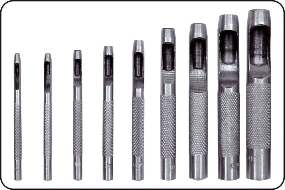 Wycinaki rurkowe wykonane z utwardzanej stali węglowej o symbolu #45 szlifowane i polerowane. Zestaw zawiera wycinaki o następujących średnicach 2,5;3;4;5;6;7;8;9; i 10 mm. Posiadają otwory do usuwania wyciętego materiał, powierzchnia chwytowa moletowana, pakowane w etui