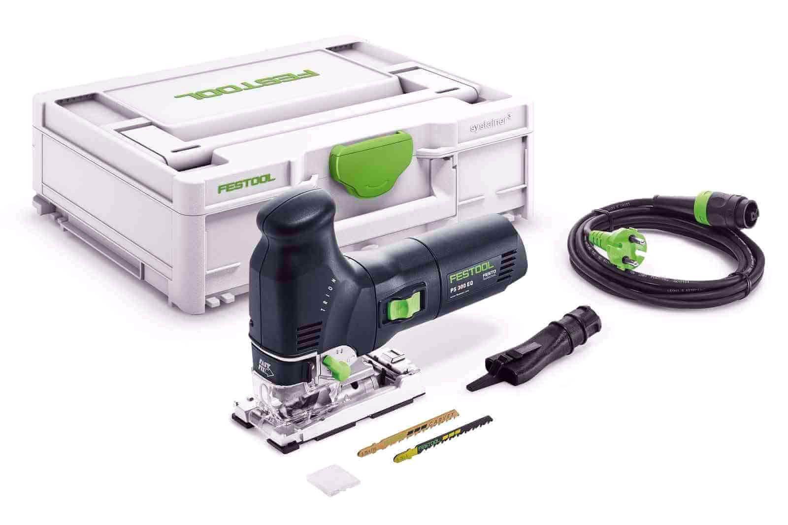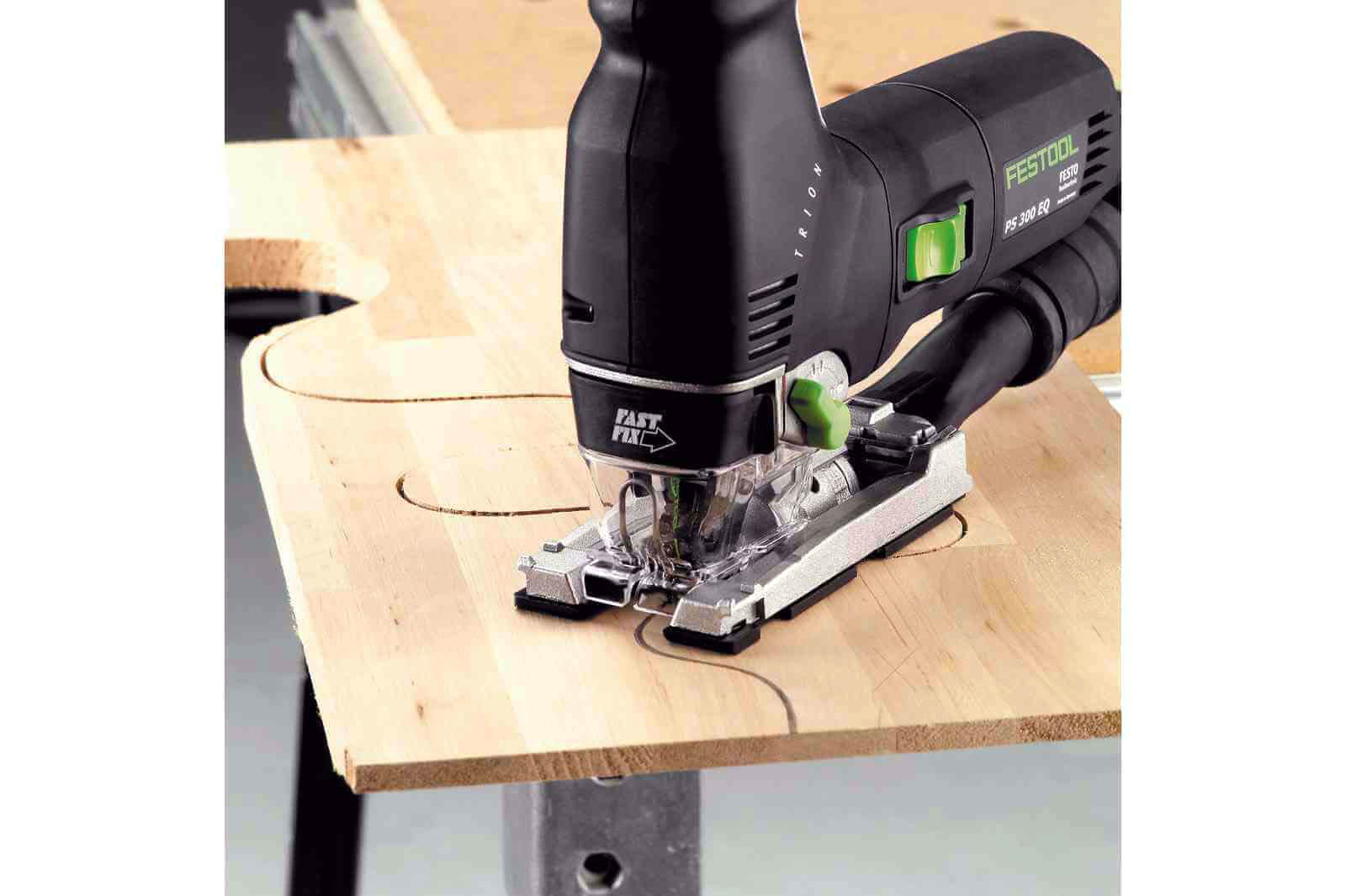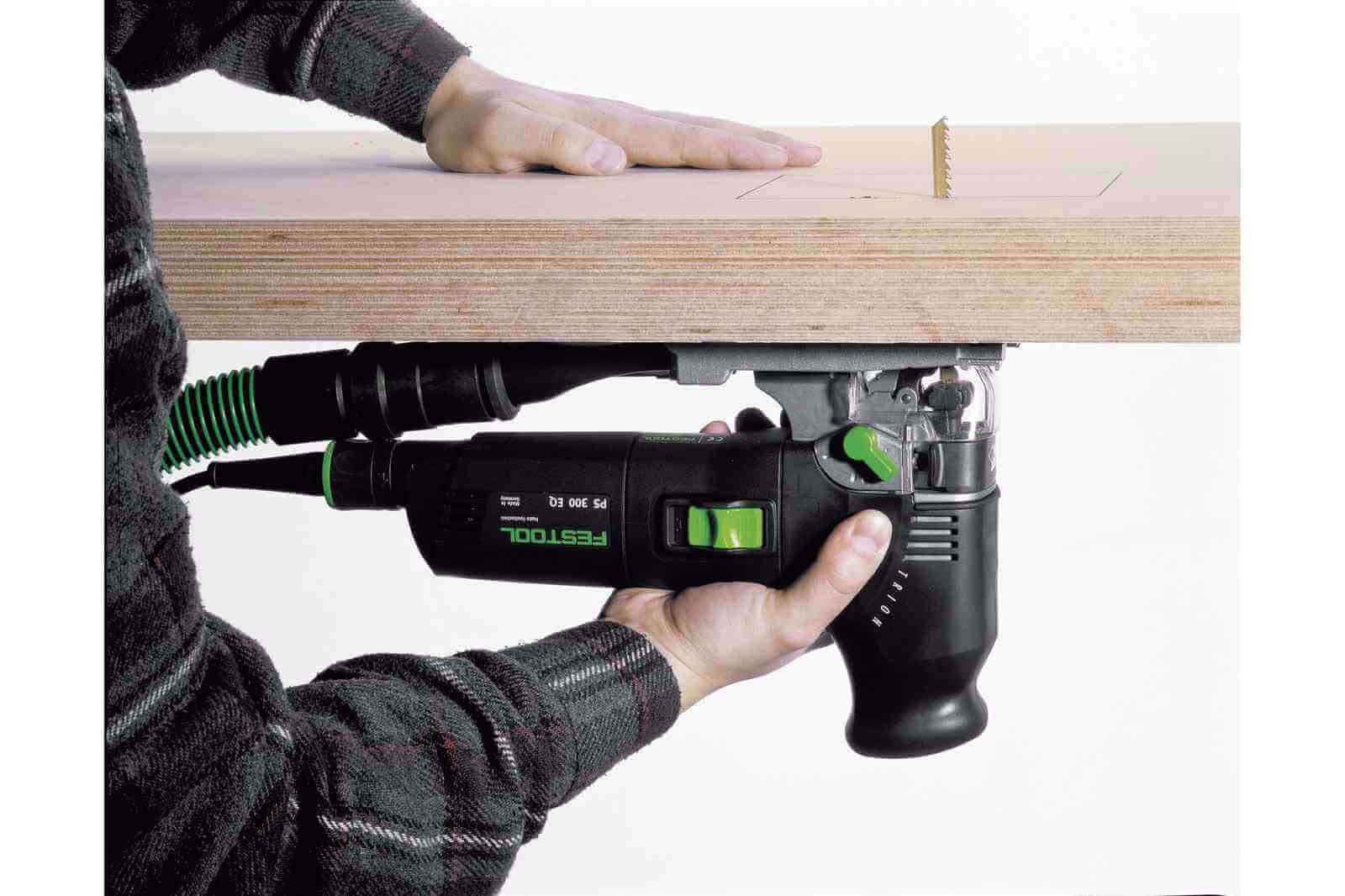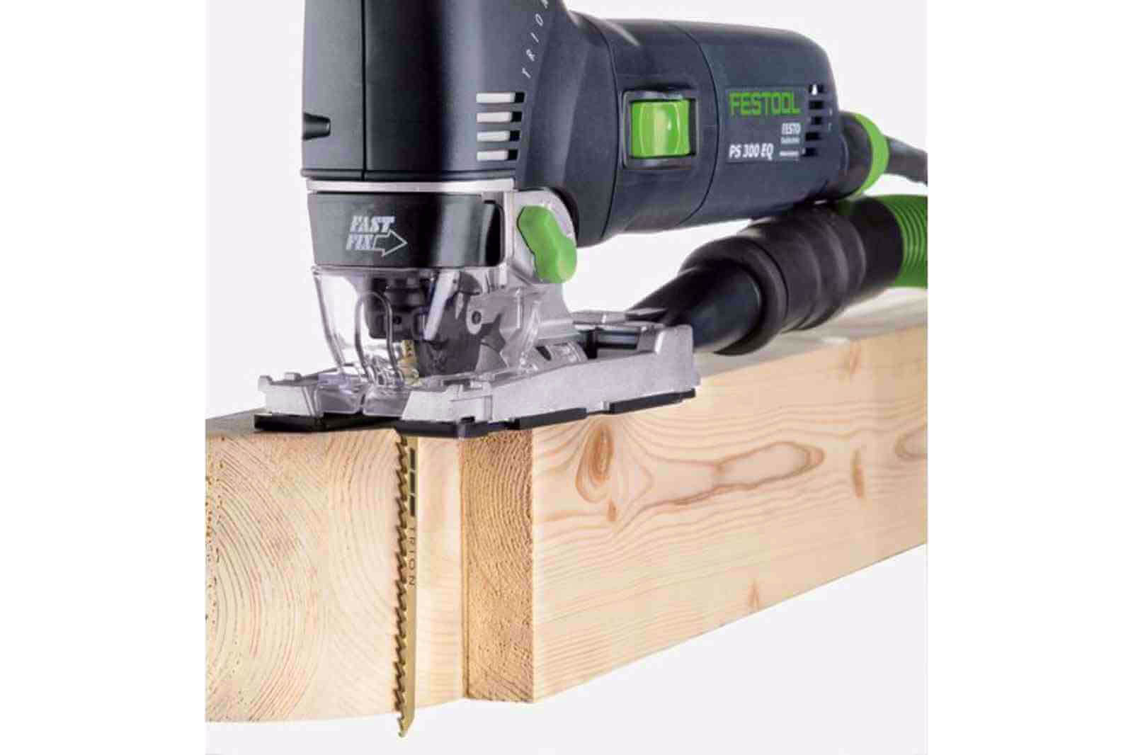 Wyrzynarka wahadłowa Festool waży tylko 2,4kg i swoją ergonomiczną budową zapewnia łatwe prowadzenie. Doskonałe wyważenie narzędzia w połączeniu z kształtem umożliwia wygodną pracę jedną ręką. Wyposażona w wydajny silnik zapewniający długą żywotność. TRION PS 300 dzięki potrójnemu prowadzeniu brzeszczotu zapewnia szybki posuw, a równolegle przestawialne szczęki z węglika spiekanego gwarantują najwyższą precyzję cięcia. Wyrzynarka eliminuje konieczność poprawek, dzięki zabezpieczeniu przeciwodpryskowemu, gwarantując gładkie przekroje. Ponadto udoskonalona elektroniką MMC dla większej wydajności, systemem Fastfix i zintegrowanym odsysaniem.
