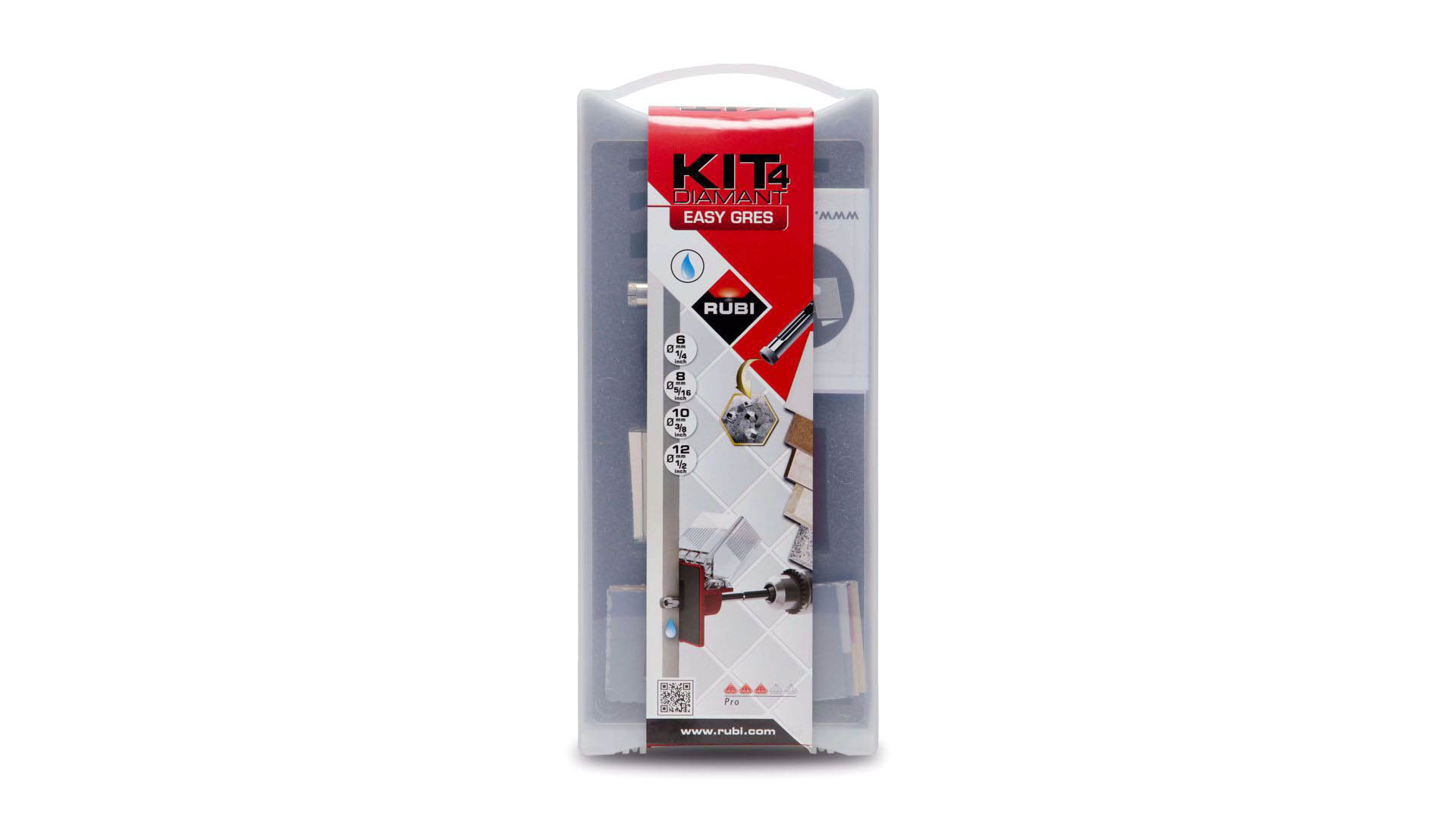 Koronki EASY GRES marki RUBI o średnicy 4, 8, 10 i 12 mm . Wiertła diamentowe powlekane jest elektrolitycznie. Posiadają boczny otwór pozwalający na lepsze chłodzenie oraz usuwanie pozostałości po wywierceniu otworu. Koronki RUBI przeznaczone są pracy z wiertarkami elektrycznymi bez udaru. Należy pamiętać, aby przed rozpoczęciem pracy sprawdzić wiertło oraz je wyczyścić. Wiertła EASY GRES zapewniają dobre wykończenie otworu oraz trwałość jeśli przestrzegamy wielkości obrotowych oraz nie wywieramy nadmiernego nacisku na wiertło. Zaleca się szybkość roboczą wiertła od 400 do 1000 obr./min w zależności od rodzaju wierconego materiału. Koronki EASY GRES umożliwiają wykonanie otworów o głębokości do 25 mm w gresie, gresie porcelanowym, granicie, marmurze i szkle.