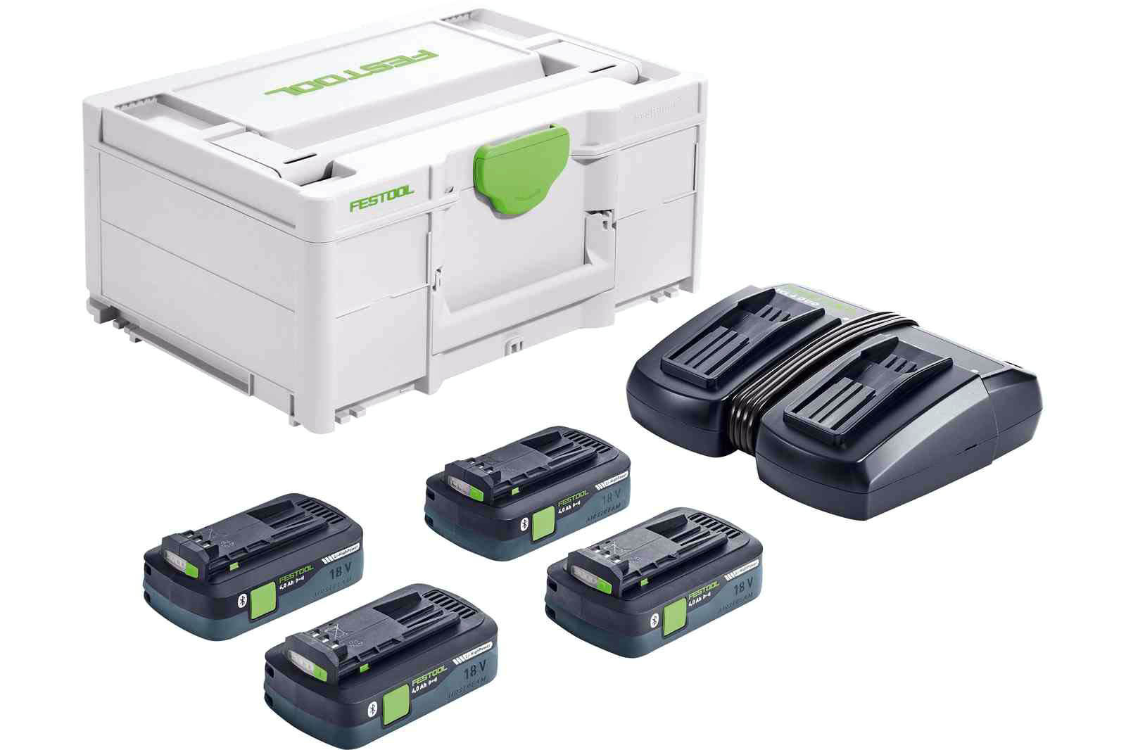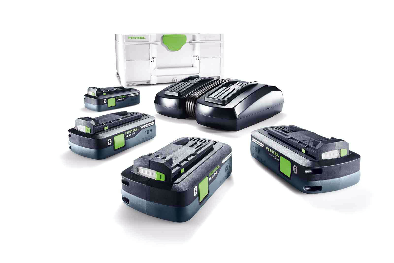 Zestaw energii Festool złożony z 4 akumulatorów 4,0 Ah Li-HighPower Compact oraz ładowarki TCL 6 DUO w praktycznym Systainerze SYS3 M 187. Akumulatory 4.0 Ah Li-HighPower Festool przeznaczone są do wszystkich zastosowań oraz kompatybilne ze wszystkimi produktami akumulatorowymi Festool, ładowarka TCL 6 DUO umożliwia ładowanie dwóch akumulatorów jednocześnie. Takie rozwiązanie sprawdza się idealnie w warsztatach i na placach budowy. Zaletą akumulatorów Festool jest funkcja Bluetooth, która automatycznie uruchamia sparowany odkurzacz mobilny po włączeniu narzędzia. Ponadto w połączeniu z funkcją Bluetooth® aplikacja Festool Work zapewnia inteligentne funkcje dodatkowe takie jak szczegółowe wyświetlanie stanu naładowania oraz innych danych eksploatacyjnych, np. temperatury lub cykli ładowania.
