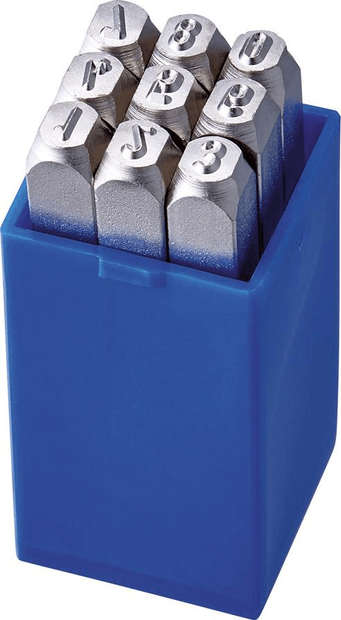 9-częściowy (0–9). Ze specjalnej stali narzędziowej wysokiej jakości, czcionka zgodnie z normą DIN 1451. Dostawa zestawu w pudełku z tworzywa sztucznego.